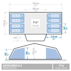 Quechua Tente Gonflable De Camping – AirSeconds 4.2 Polycoton – 4 Personnes – 2 Chambres
